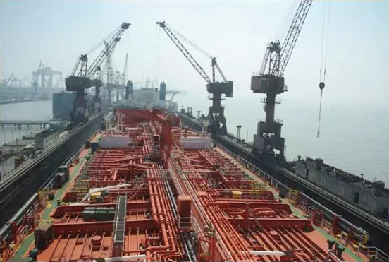 接下来船上的二副带我们参观了驾驶台,对电子海图、雷达等设备进行了详细的介绍和演示。之后,我们来到了厨房区域,看到船上的蔬菜、干货、肉类、鱼类由于所需温度和湿度的不同,都进行了分开储藏,顿时觉得很高大上,同时也对船员兄弟们的餐食非常的放心。 在船员餐厅稍事休息之后,由森海派上船的机舱实习生王猛带我们参观了机舱,尽管目前主机正在进行维护保养工作,其他一些设备也并没有处于运转状态,但噪音和高温还是让人不由感叹船上工作的艰辛。在参观舵机室、机控室的过程中,王猛还向我们解释了空气压缩机、蒸汽锅炉等大型设备的工作原理。船上配备了许多EEBD,安全措施十分到位。王猛表示他现在已经对船上的生活很适应了,与其他船员也相处融洽,一定会继续努力工作请公司放心,感谢公司给他安排了PARAKOU这个优秀的船东。 离开机舱之后,我们来到了甲板上。与其他类型的船舶不同,映入眼帘的是密密麻麻的输油管道。船舶被整体架起于船坞的木板之上,船厂工人正在进行紧张的补漆、清扫作业。 短短半天的访船活动在午饭后就告一段落了,尽管时间很短,但船上井然有序的管理和热火朝天的工作氛围还是给我们留下了非常深刻的印象。通过此次访船,我对船员的生活有了更深入的了解,也切实的看到了PARAKOU给船员安排的福利让船员能更安心的船上工作,希望有更多的船员加入PARAKOU这个大家庭。
