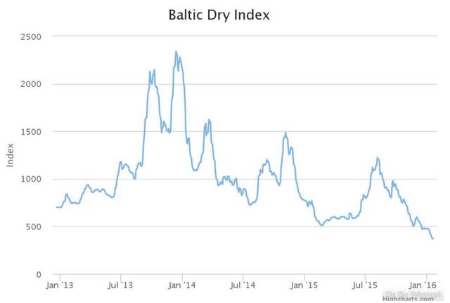由于全球需求低迷,和担心船舶供应过剩,波罗的海干散货指数(BDI)已经连跌11个交易日,屡创新低。在今年迄今的不到一个月的时间里,BDI下跌超过了20%至363点,为1985年有纪录以来最低。海岬型船、巴拿马型船和超灵便型船运价指数周二全部刷新纪录低位。